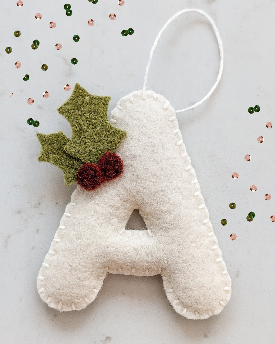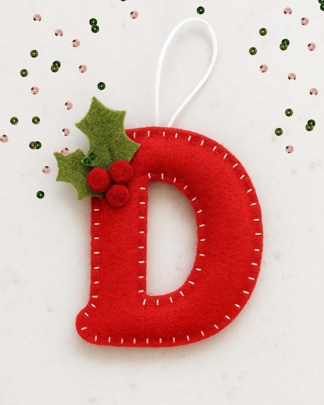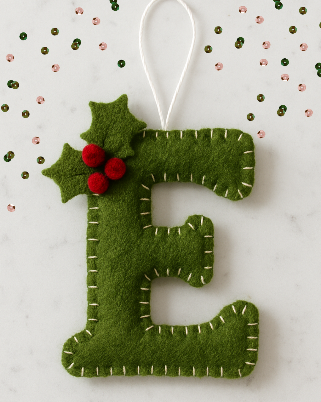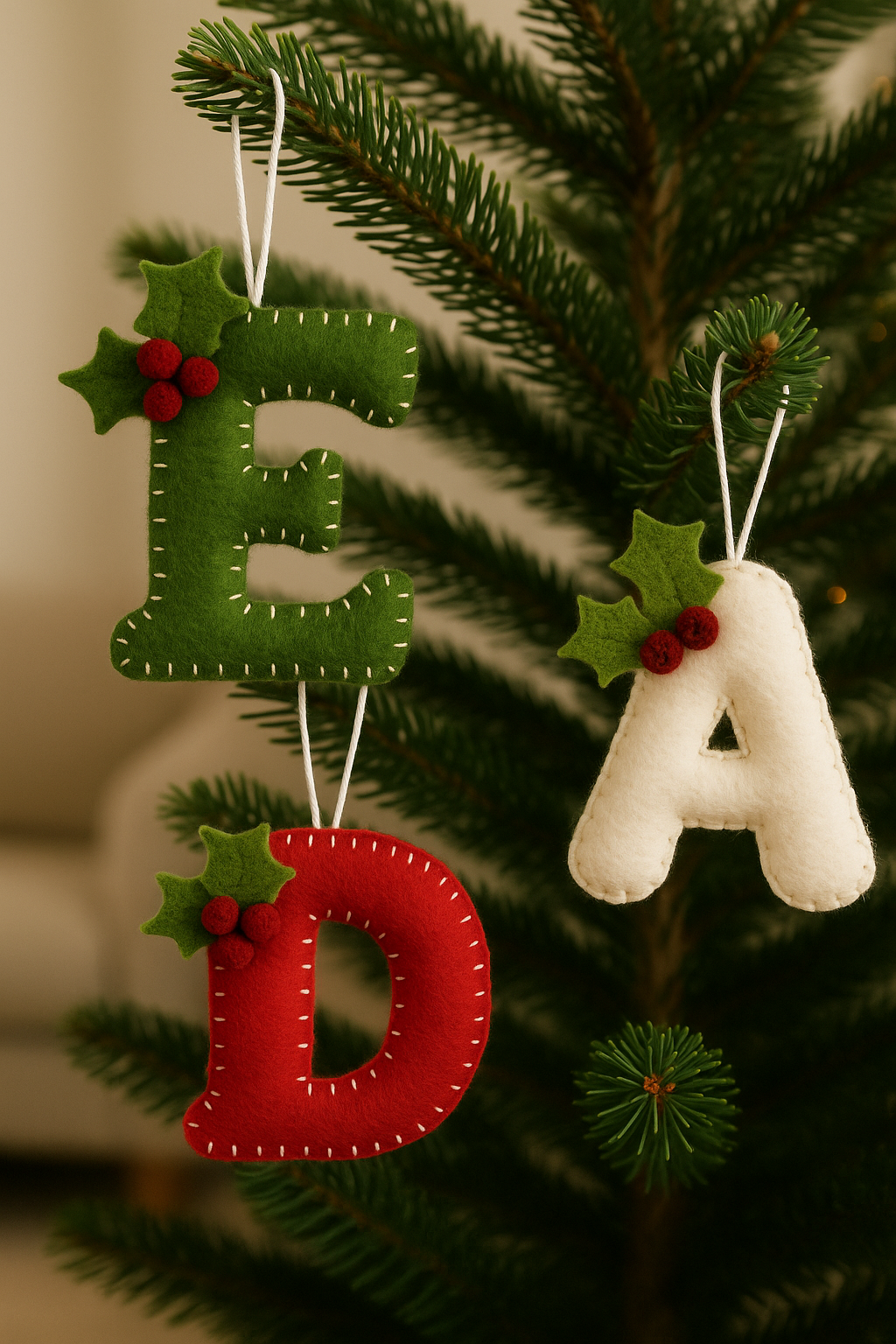 Apportez une touche chaleureuse et personnalisée à votre sapin avec nos décorations de Noël en forme de lettres, entièrement cousues à la main. Chaque pièce est réalisée en douce feutrine et minutieusement brodée, ce qui rend chaque décoration unique.